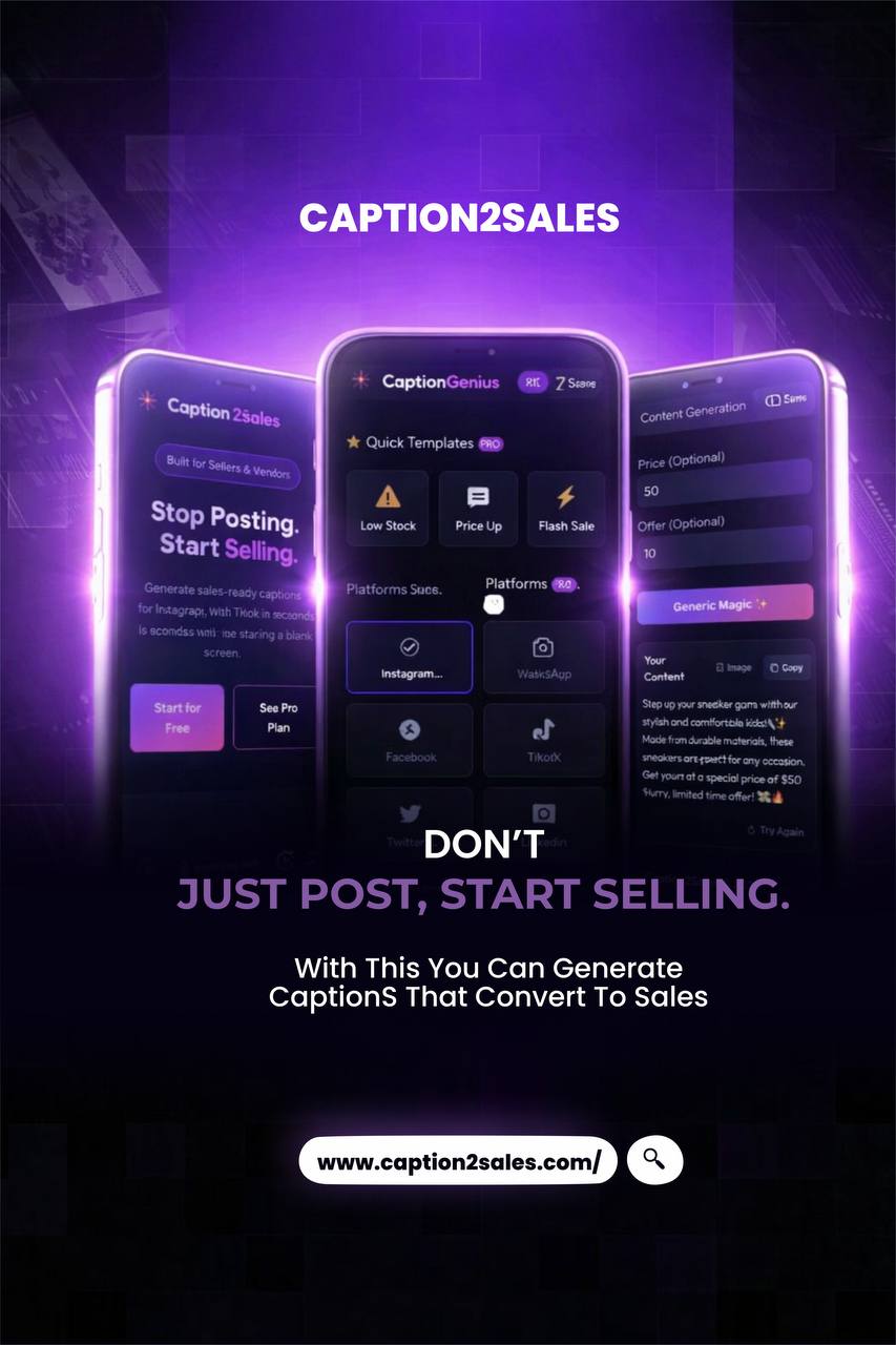Choose where you are posting (Instagram, TikTok, etc.) and the Vibe (Professional, Funny, Sales, etc.).